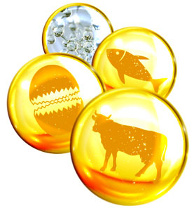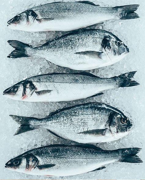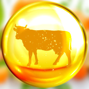 Usually cows or fish, sometimes chickens, shellfish, or other animals.